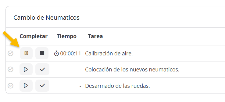 A partir de esta actualización, todas las tareas asociadas a una orden de trabajo podrán ser cronometradas individualmente. Cada tarea contará con una función de control que permitirá: