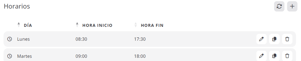 Horarios de sucursal: el tiempo contado solo cuando el taller está abierto. Puedes definir los horarios de atención de cada sucursal (por ejemplo: lunes a viernes de 8:00 a 18:00, sábado de 8:00 a 13:00).
