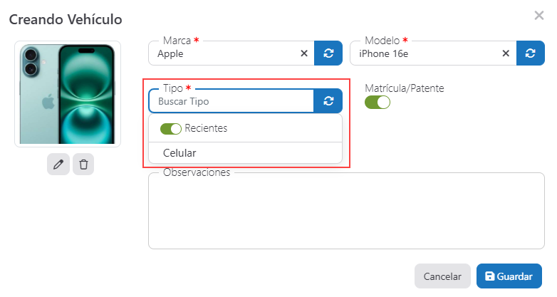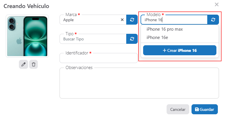 Por eso, incorporamos una nueva mejora en Gestioo pensada para agilizar la gestión de talleres desde el primer ingreso de datos. A partir de esta actualización, cuando una marca, modelo o tipo de equipo/vehículo no exista en el sistema, ahora se puede crear rápidamente desde el mismo formulario de carga, sin interrumpir el proceso.